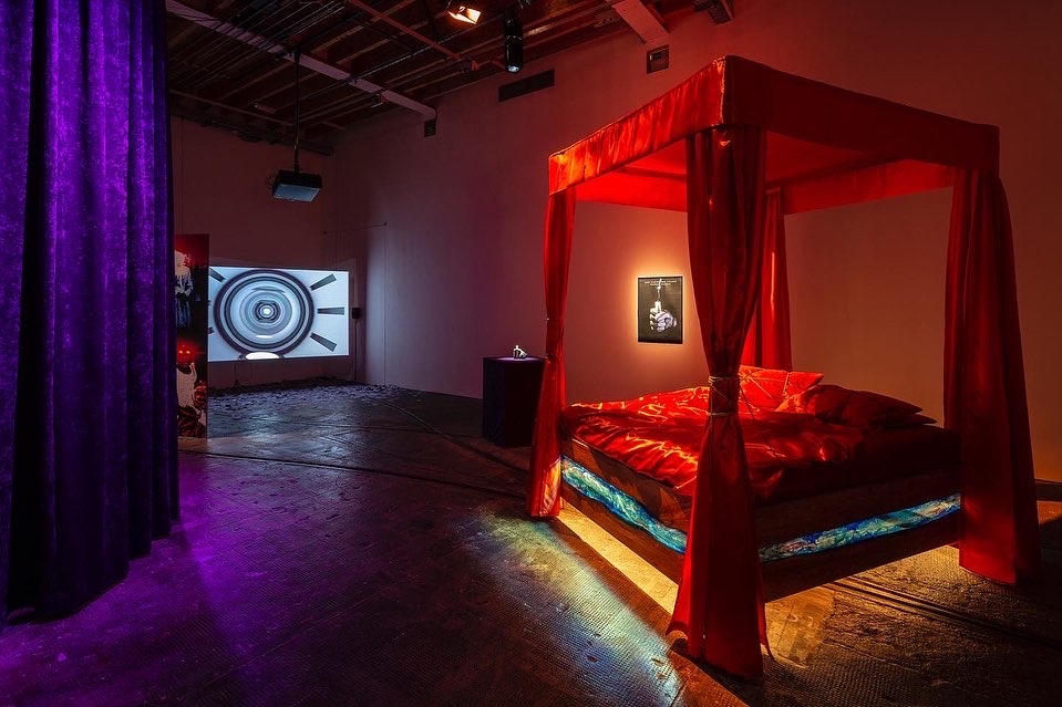 Gentle Battle is the debut solo exhibition of Paris based artist, DJ, producer and performer Christelle Oyiri (b.France, 1992). Weaving together forgotten mythologies and the political nature of dance music, Oyiri’s work looks for alternative ways to understand and un-braid the complex knot of history, identity and experience. Gentle Battle charts a path through these often clouded waters, a guided journey conceived as a series of ‘time-spaces’ in which we are invited to dwell and reflect. Through symbolic elements as diverse as a mirror, an elephant tusk, a four-poster bed, and a karaoke booth, Oyiri generates doors, capsules and portals to other realities in which stories slip into histories - modern mythologies that mix and remix personal and collective experiences.